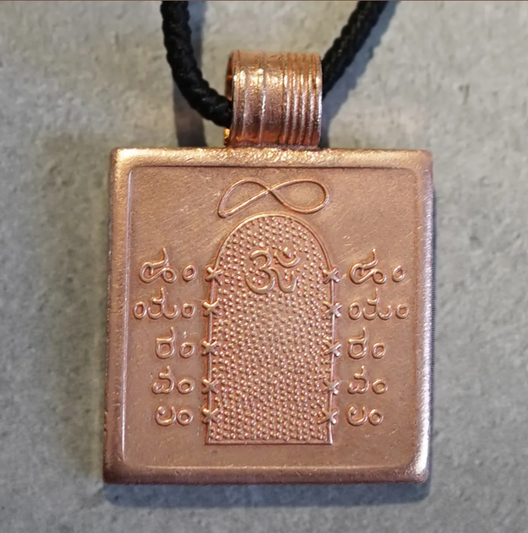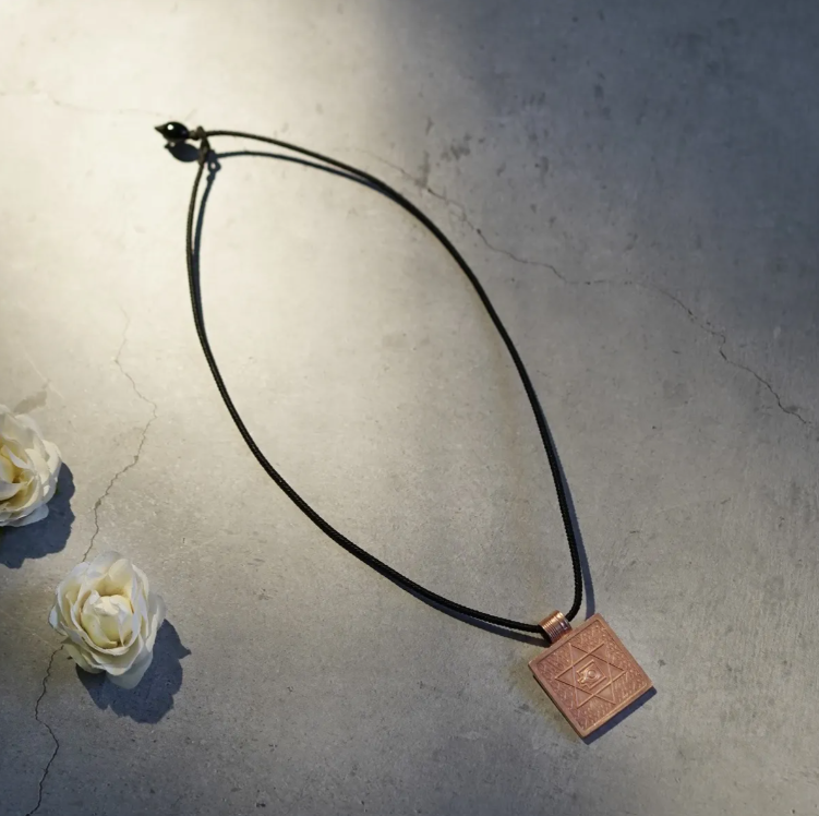 This pendant must be worn in the necklace/thread made from copper, silver, gold or silk only.