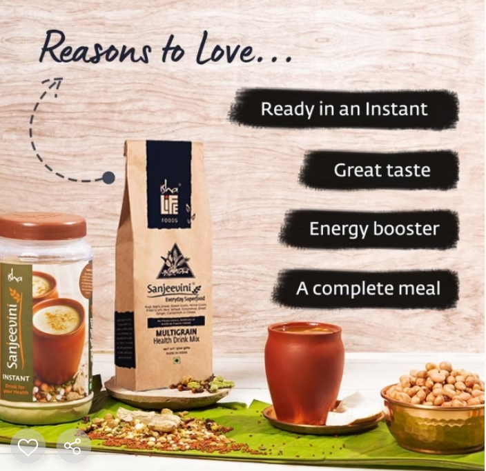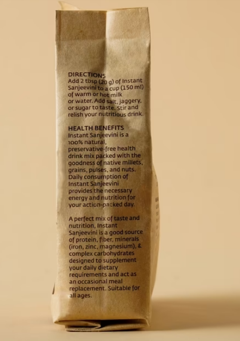 Millets and multigrains from across India come together to make Sanjeevini, a wholesome health drink which takes an instant to prepare. Made with select Indian spices this has a warmly comforting taste your grandma would approve of.