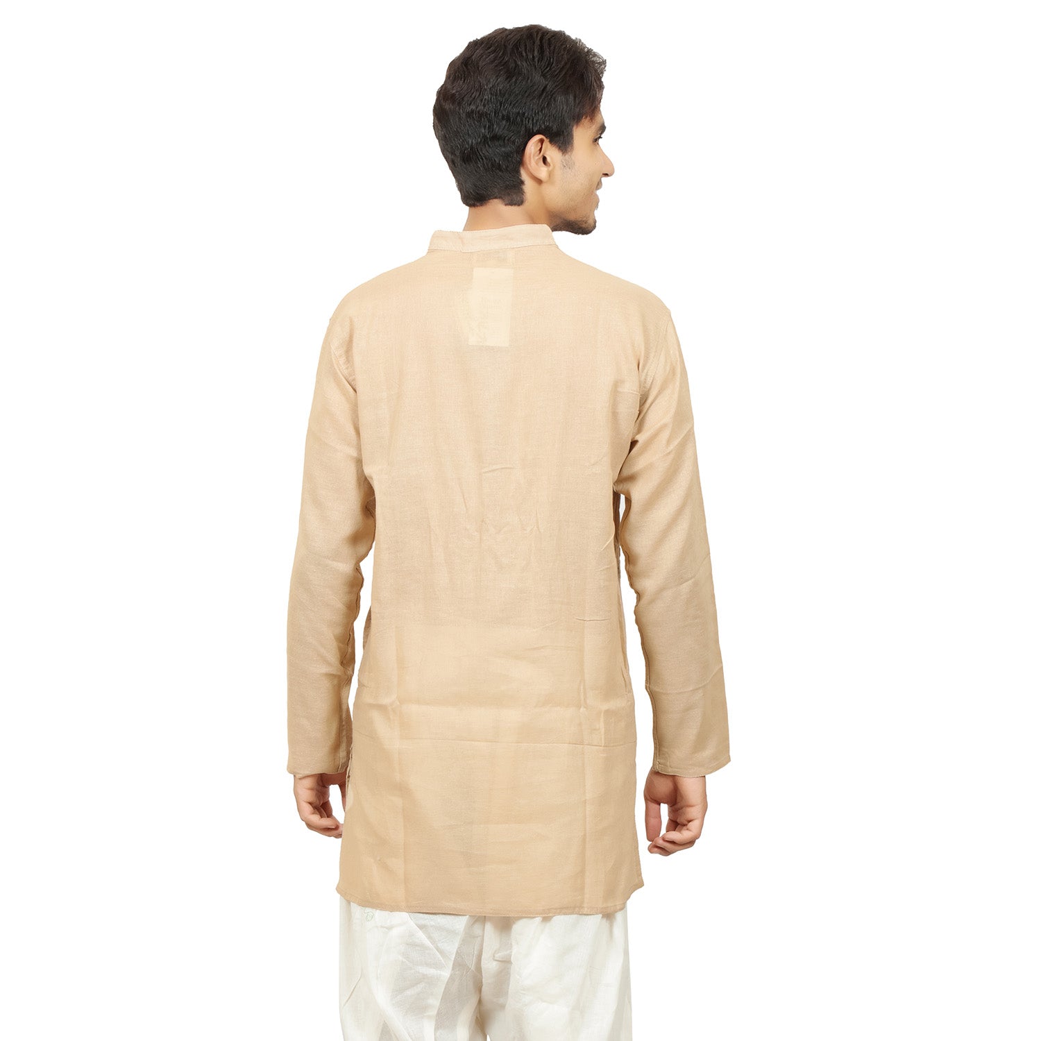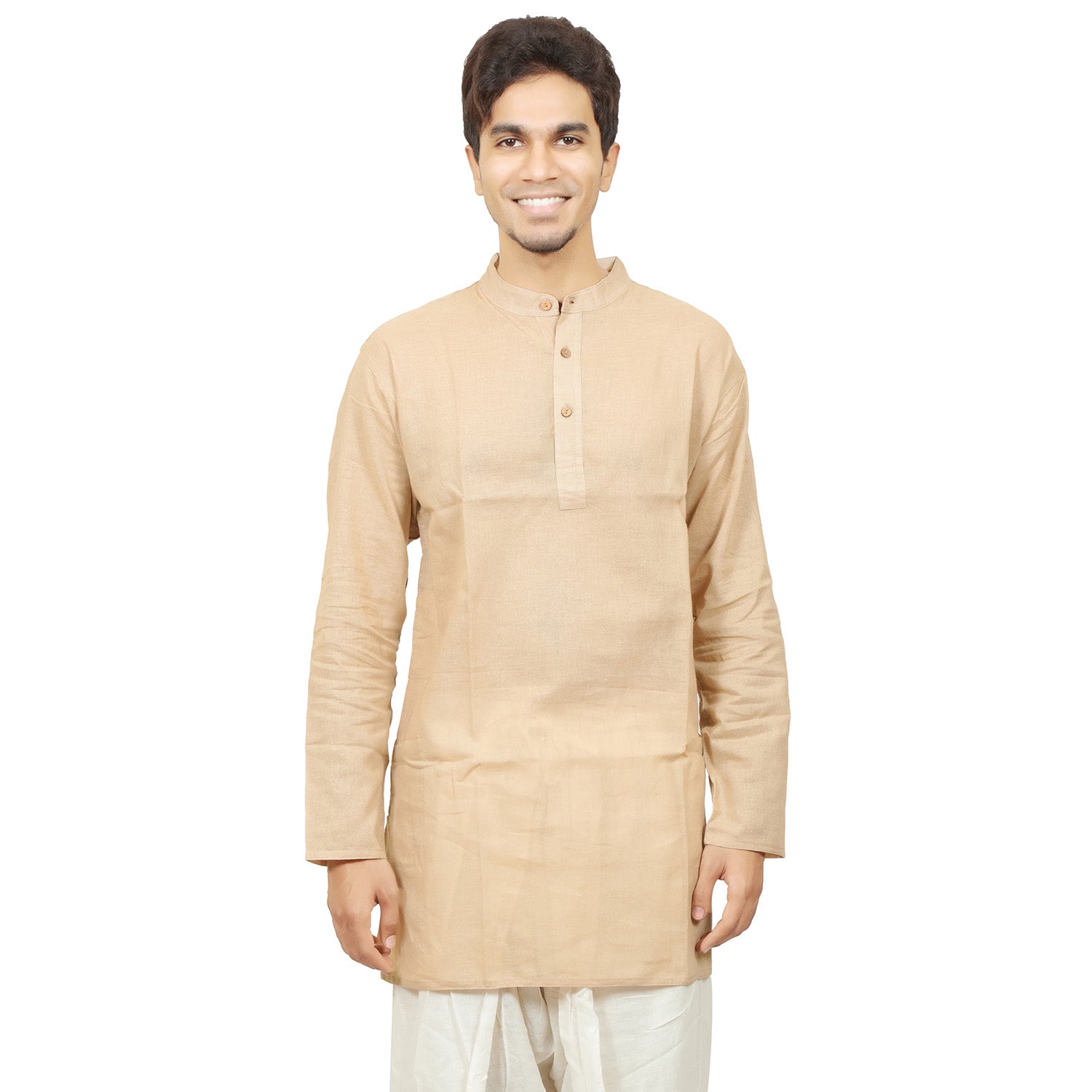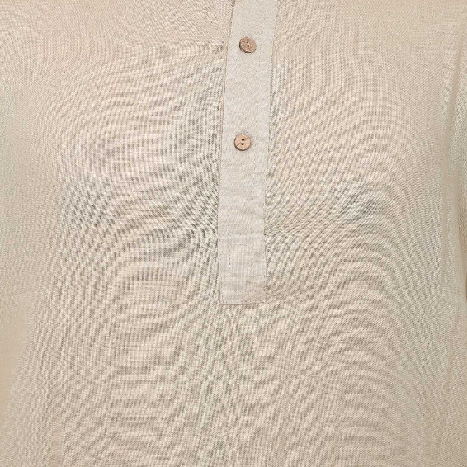 This beige color kurta has been made from Hemp (which is one of the most environmentally friendly fibers in the world) and cotton. Hemp gives it a look of classic linen. This kurta is incredibly versatile and can be matched with trousers or dhoti. It has a very elegant design and fitting which gives it a perfect ethnic look. It can be used as a comfortable yoga wear as it will allow your skin to breath during your practice. Apart from this, it will give a cool look at casual hang out with friends as well.