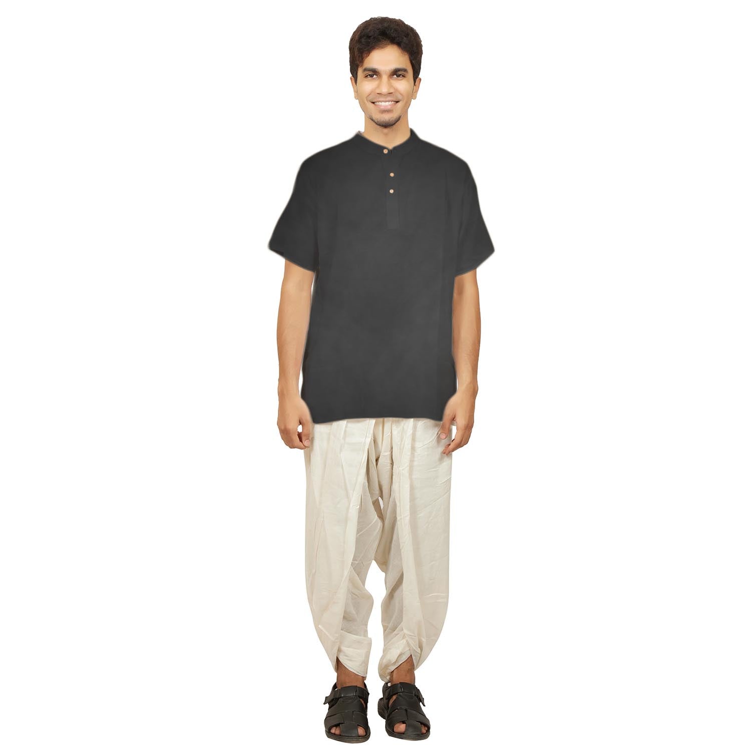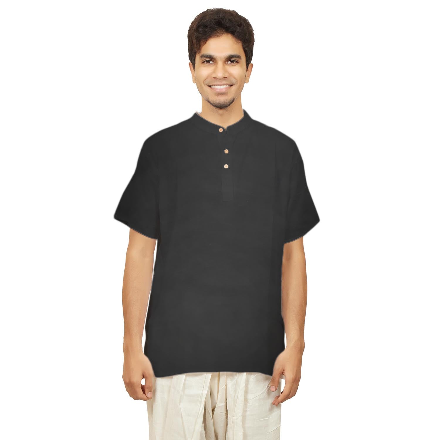 This black color kurta has been made from Hemp (which is one of the most environmentally friendly fibers in the world) and cotton. Hemp gives it a look of classic linen. This kurta is incredibly versatile and can be matched with trousers or dhoti. It has very elegant design and fitting which gives it a perfect ethnic look. It can be used as a comfortable yoga wear as it will allow your skin to breath during your practice. Apart from this, it will give a cool look at casual hang out with friends as well.