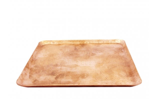 This gold tone hammered brass plate is an exquisite square piece which can be used for placing a lamp in your temple or even for decoration to liven up your space. The hammer indentations visible on the plate give it a vintage look.