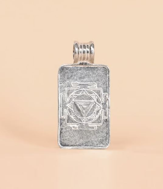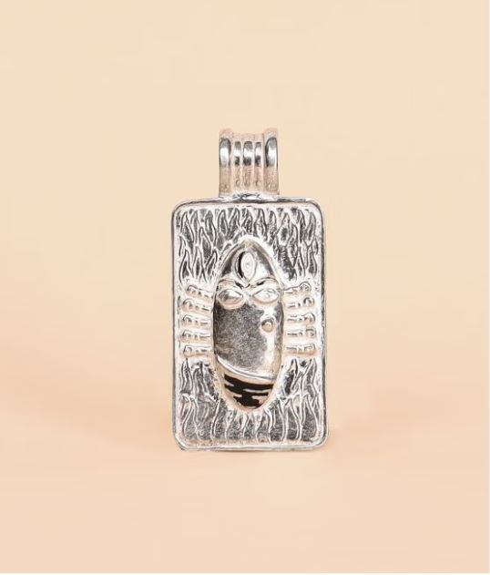 These specially designed silver pendants undergo a process of consecration where they are offered, and left at the feet of Devi for a period of time. Use of this pendant can enhance one's receptivity to Devi. Can be worn by anyone of any age. If you wish to wear this pendant with a necklace/thread of your choosing, the material must be copper, silver, gold or silk. Please do not wear any of the Bhairavi pendants with any other metals or materials.