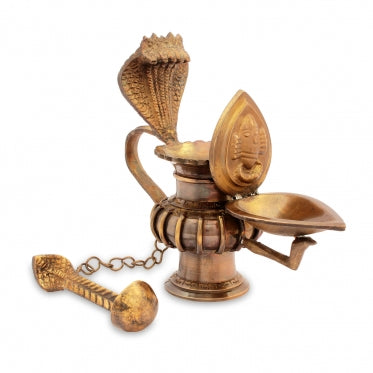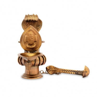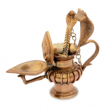 This intricately designed lamp of Linga Bhairavi with divine serpents includes a chamber for keeping oil and an attached spoon. This lamp can also be used to enhance the ambiance during festivities like Diwali, Navratri, Karthikai Deepam.Sadhguru explains the significance of lighting Oil Lamps in your house. Read the article here. Click here for Copper cleaning instructions.