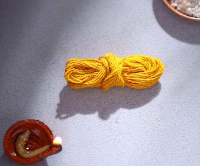 A consecrated thread adorns the Sanniddhi, which needs to be replaced when damaged. The sutra should be removed by untying or burning and shouldn't be cut. It can be disposed of by burying it under wet soil or tying it on a flowering tree. It can also be put in flowing water, such as a river, or a large water body, such as a lake or ocean.