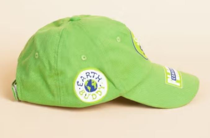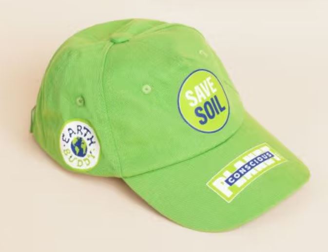 Green Baseball Cap with Save Soil and Conscious Planet printed.
