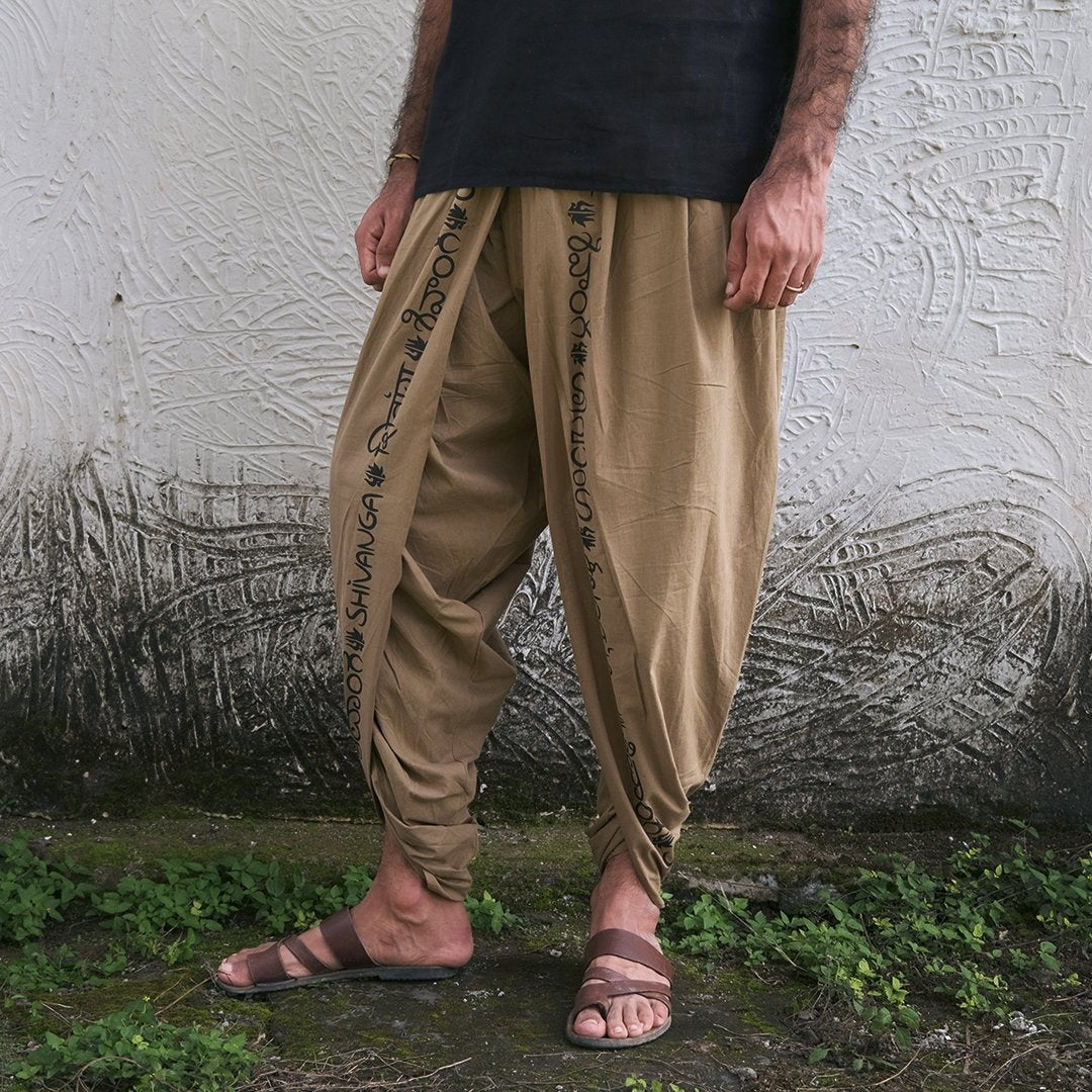 Isha’s signature dhoti pants in unique olive green with Shivanga prints.