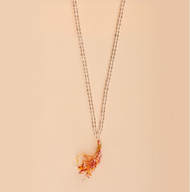 The beads on this Spatik mala are crystal clear, and are perfectly aligned against one another with a delicate tassel connecting them all.