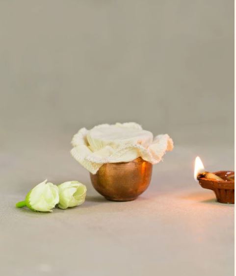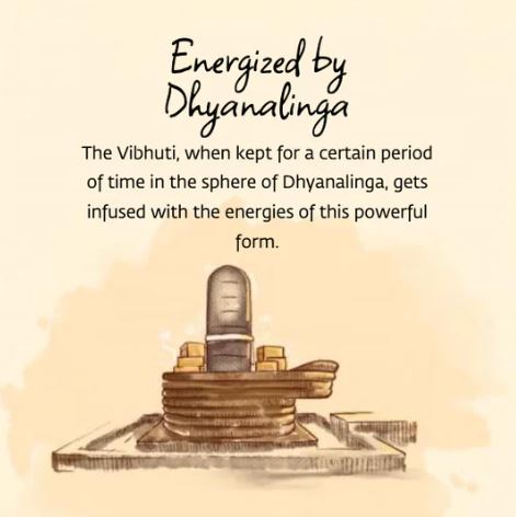 The Sacred ash, Vibhuti is traditionally applied to the forehead between the eyebrows. Other areas that vibhuti is sometimes applied is the throat and to the solar plexus area where the left and right rib cages meet, just below the heart. Vibhuti is individually in small copper vessels and then left in the Dhyanalinga temple for a period of time wherein it is specially blessed by Dhyanalinga.