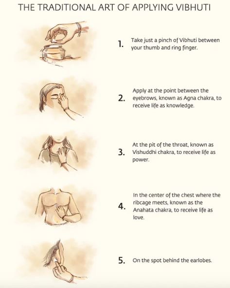 Now this powerful vibhuti here, when you take it with your ring finger, unknowingly you will drop some karma right here. The whole tradition was built like that - whichever way, you must be slowly moving towards your liberation. - Sadhguru